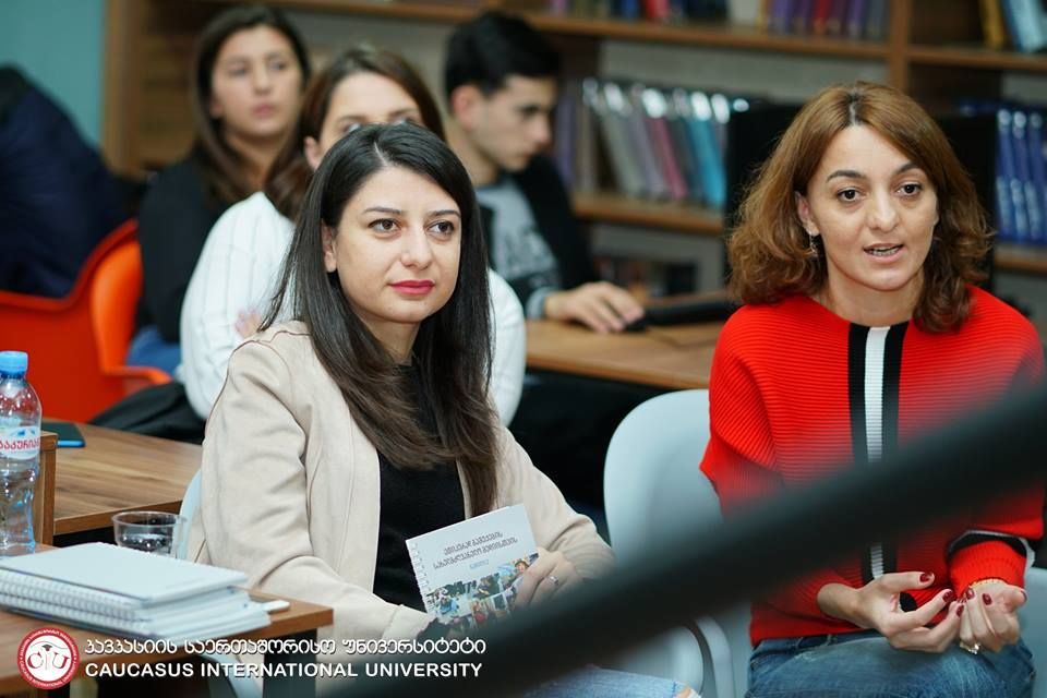 Nata Dzvelishvili, Executive Director of the Georgian Charter of Journalistic Ethics and Nino Narimanashvili, Editor of Media-Checker presented the new Textbook for Ethical Coverage in Media, part 2 at Caucasus International University Library on October 17, 2018. The meeting was planned for the third-year students of the Faculty of Social Sciences specializing in Journalism within the framework of the academic discipline “Conflict Coverage” (supervisor, CIU Dean Irina Ghvineria). However, every interested student was welcome to attend. The students and speakers focused on various cases; in addition, an interesting discussion was held on self-regulation issues and principles of ethical and moral journalism during the book presentation. It is worth mentioning that the topic for the future lecture-discussion was planned at the meeting held on October 17. The presenters will provide concrete information on private security of a journalist and listen to their position. We would like to remind you that CIU Faculty of Social Sciences traditionally collaborates with The Georgian Charter of Journalistic Ethics. Nata Dzvelishvili, Head of the Charter and Salome Achba, Head of Media-Checker presented the first part of the Textbook for Ethical Coverage to CIU students in May, 2017.